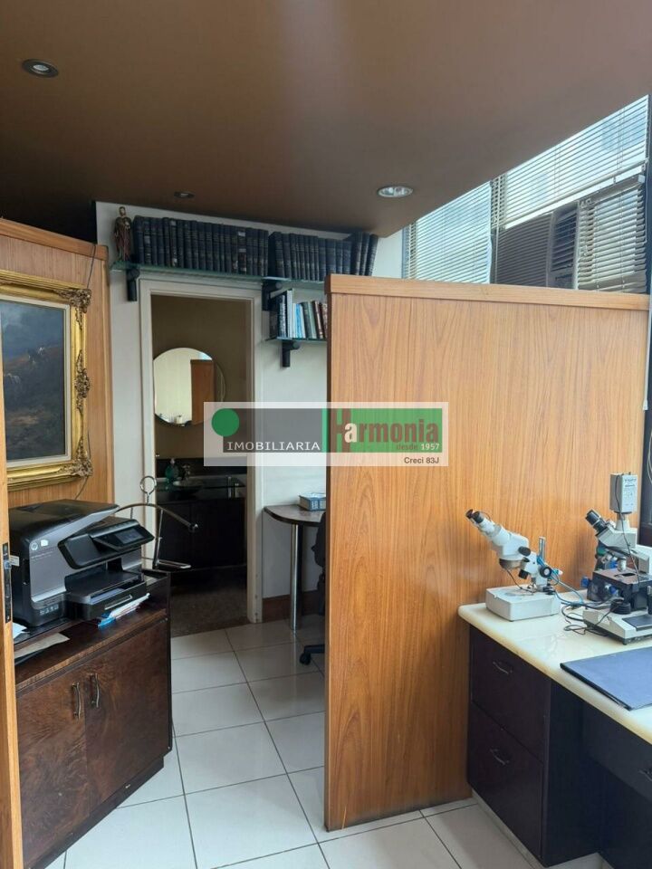 Atualmente o espaço está dividido em 5 salas, conta com 3 banheiros, copa e 3 vagas de garagem.